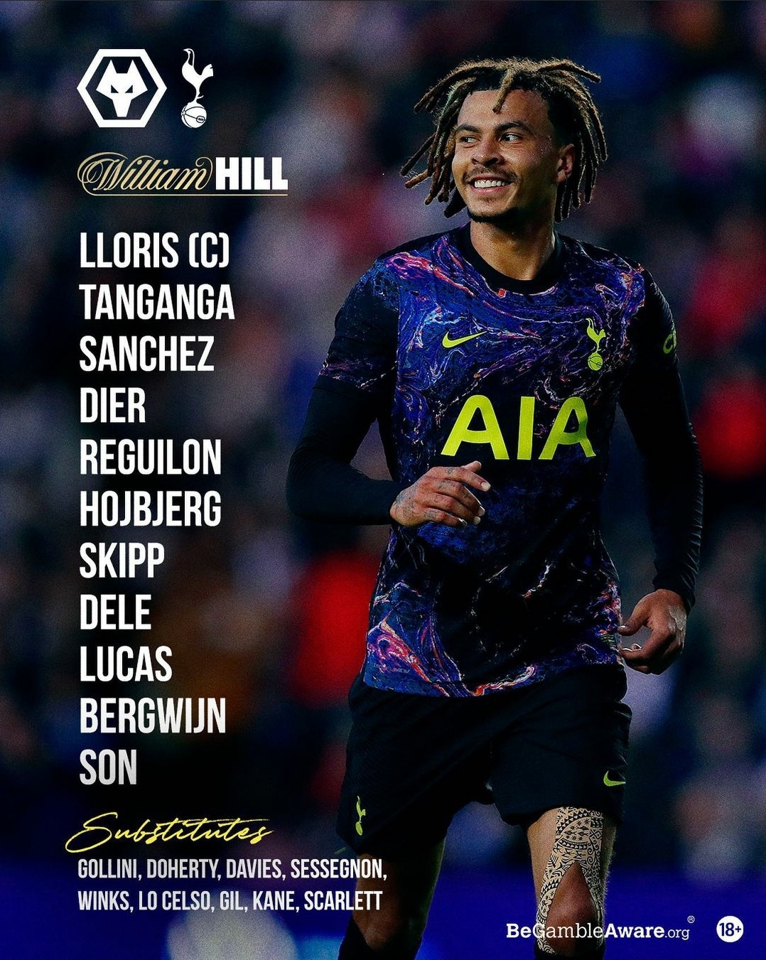 원정팀인 토트넘은 4231 라인업으로 4백엔 탕강가, 산체스, 다이어, 레길론이 위치하였고